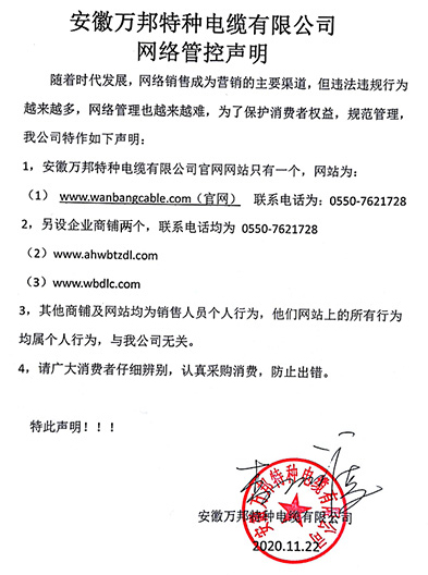 鄭重聲明:安徽萬邦特種電纜有限公司官方網站為:www_wanbangcable_com.bxwtkj.cn,除此之外無任何子網站或合作網站,其余均為假冒偽劣。電話:0550-7621728 13485756353 地 址:安徽省天長市滁州高新技術產業開發區經四路29號